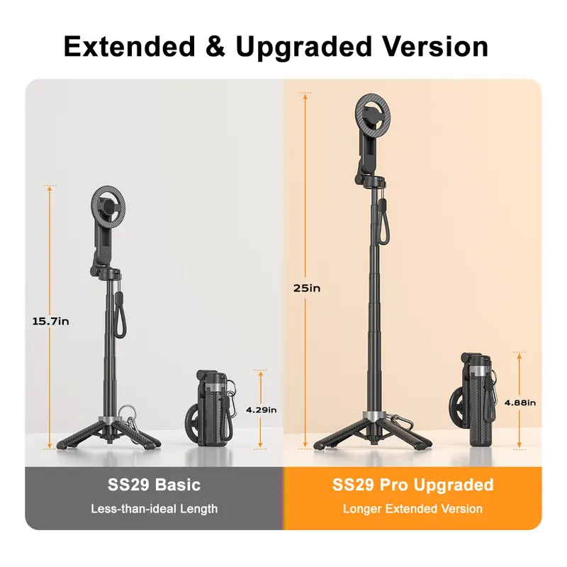 Upgrated 5-in-1 Magnetic Selfie Stick with Remote for Cell Phone 360° RotationCan Transforms into Mini Tripod,Camera Grip,Handheld Stabilizer,Phone Stand.